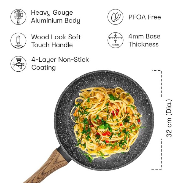 • NON-STICK SURFACE: The scratch-proof, 4-layer Daikin non-stick coating and the 4mm thick base make it easy to cook with less oil & prevent food from sticking.
